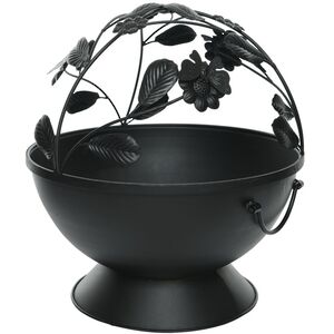 Уютные посиделки у костра в кругу близких и друзей - поистине душевный и приятный досуг. Трепетно подрагивающее и согревающее пламя, тихое потрескивание дров, непринужденные беседы - настоящая гармония и единение с природой. Кованая чаша для хранения дров поможет создать ламповую атмосферу как дома, так и на улице. Её можно поставить рядом с камином или в саду, как дополнение к очагу для костра. Дровница украшена изумительным орнаментом: над ней изящно переплелись тонкие стебельки диковинных цветов, а если приглядеться, то можно рассмотреть среди черных лепестков аккуратную бабочку. Завораживающе и притягательно!