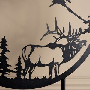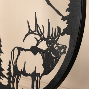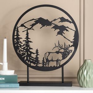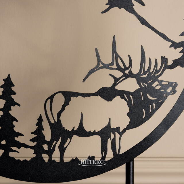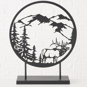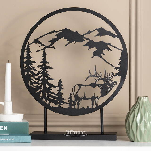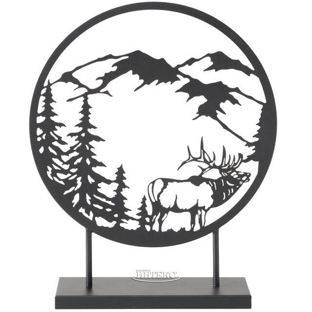 Почувствовать невероятную атмосферу отдыха в горах вы сможете, даже сидя на диване в своей уютной гостиной! Для этого достаточно лишь бросить взгляд на стильную декоративную фигурку от немецкого производителя Boltze. В эффектной черной металлической рамке размещен великолепный пейзаж: на заднем плане виднеются заснеженные вершины гор, а на переднем можно разглядеть высокие ели и благородного оленя с большими ветвистыми рогами. Декоративная статуэтка имеет гармоничную деревянную подставку, которая отлично дополняет композицию и позволяет с комфортом разместить ее на любой горизонтальной поверхности.