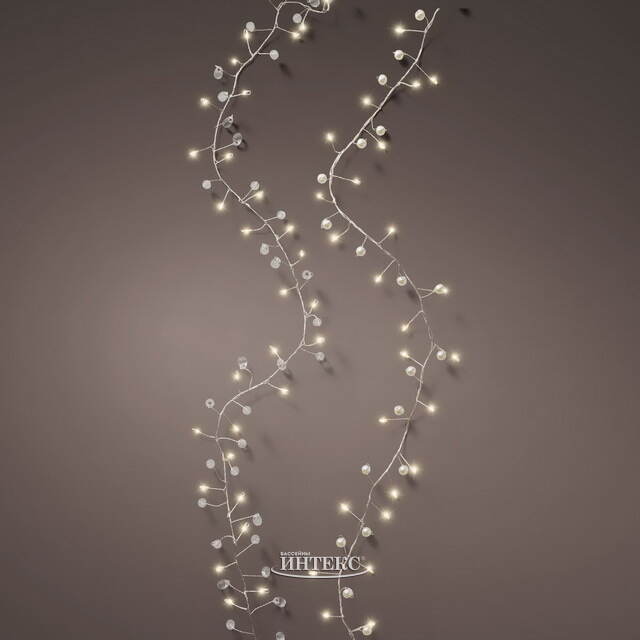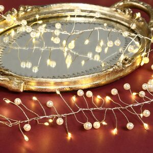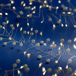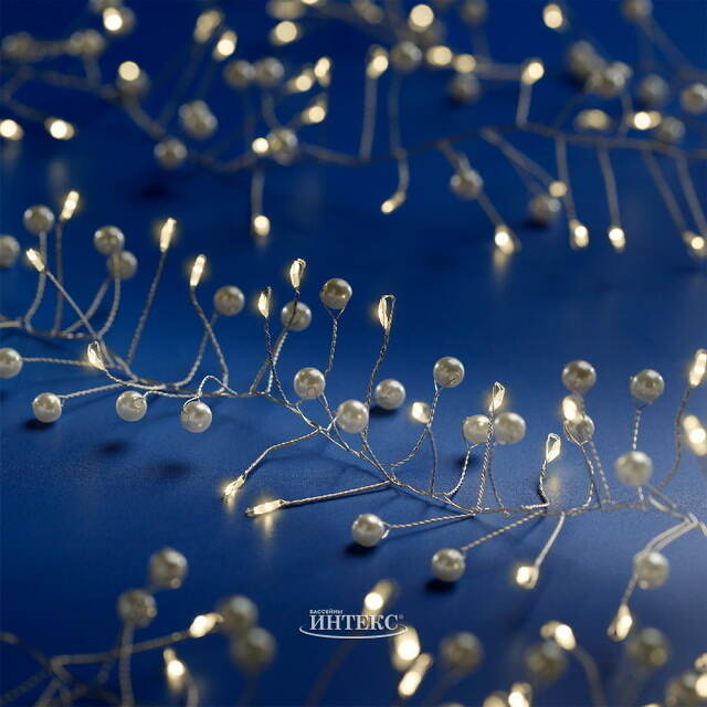 Светодиодная комнатная гирлянда Жемчужины - классический вариант иллюминации, отлично вписывающийся как в оформление елки, так и интерьера. Серебристая изящная нить с аккуратными торчащими отростками, на которых сияют микро диоды, завораживает эстетичным дизайном и теплой белой подсветкой. Особенностью этой модели является наличие декоративных элементов - белых бусинок. В сиянии огней они становятся похожими на блестящие жемчужины.