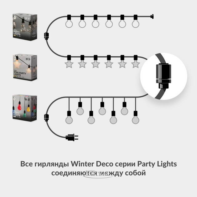 Все гирлянды Winter Deco серии Party Lights соединяются между собой.