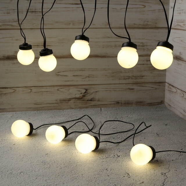 Светодиодная гирлянда из круглых матовых лампочек отлично подойдет для оформления уличных площадок. Они ярко светятся, тем самым создают праздничную атмосферу. Знакомые каждому из нас электрические приборы круглой формы лаконично впишутся, как в классический интерьер, так и в модный лофт или хай-тек.