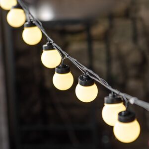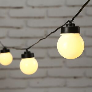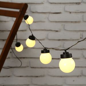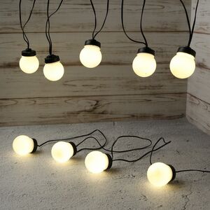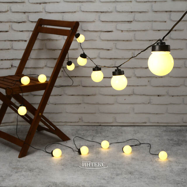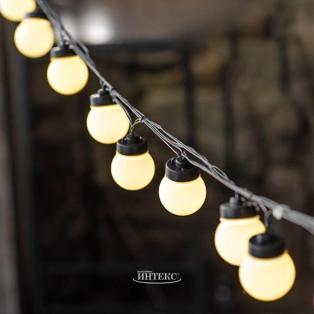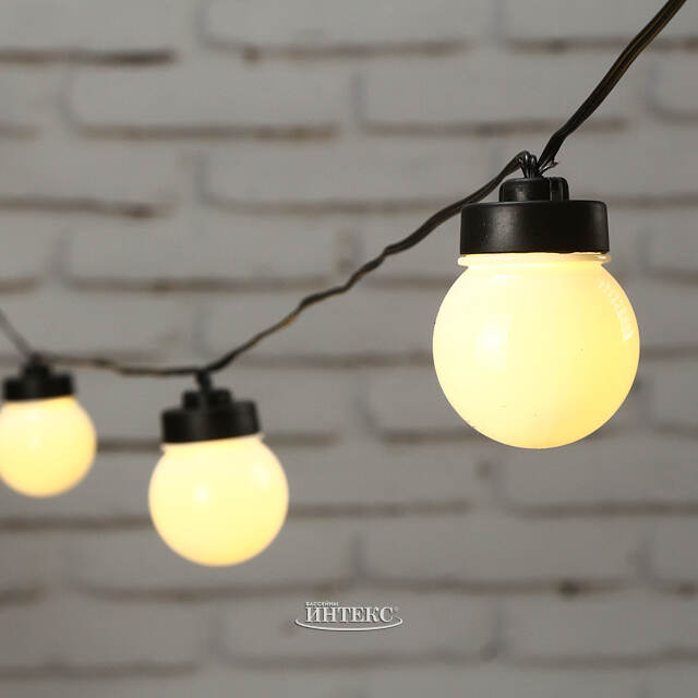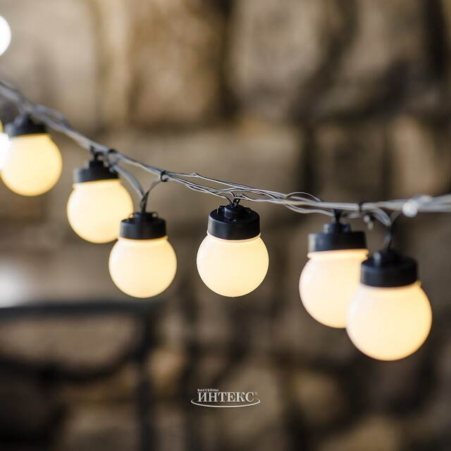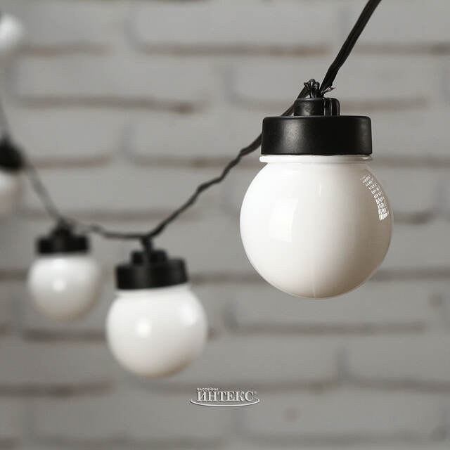- Количество ламп: 20 шт. Цвет свечения - теплый белый. Плафоны белого молочного цвета.