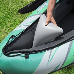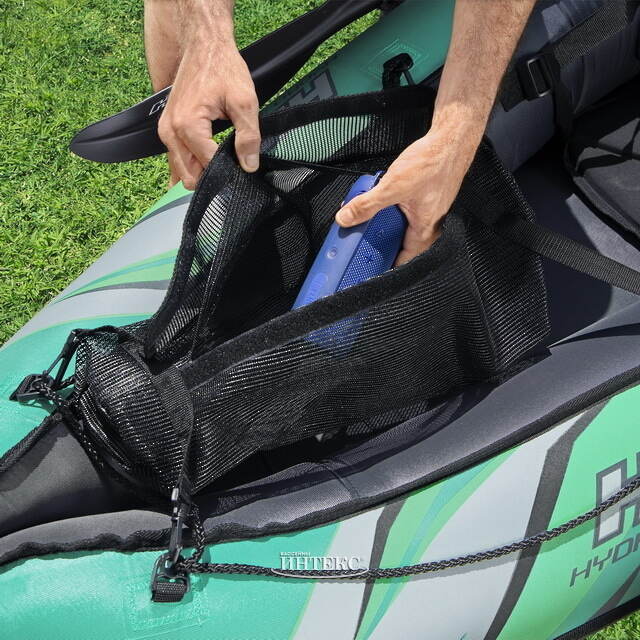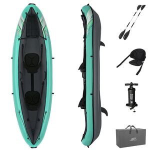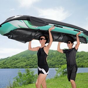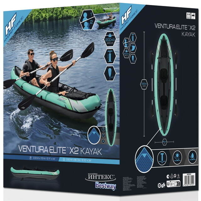 Надувная двухместная байдарка с веслами от Bestway Ventura Elite-X2 оснащена всем необходимым для прогулок по реке, озеру или морю. Удобные надувные сидения со спинкой позволяют с комфортом разместиться внутри, а дополнительную экипировку или вещи сложить в сетку впереди себя. Плавники на днище создают устойчивость и стабильность взятого курса - при необходимости их можно снять. Страховочный трос защищает в экстремальных ситуациях. Материал надувной байдарки изготовлен из высокопрочного ПВХ, устойчивого к проколам и растяжениям. В комплект входит ручной насос, благодаря чему вы сможете надуть каяк в походных условиях, а также чехол, в котором удобно хранить изделие в сдутом состоянии.