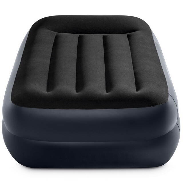 Односпальная надувная кровать со встроенным насосом - отличный выбор для ценителей комфорта! Выполнена в темном цвете и очень приятна на ощупь за счет флокированной поверхности, делающей ее похожей на бархат. Лежать на ней очень комфортно! Поверхность водостойка и легко очищается от загрязнений, на ней не скользит постельное белье и подушки.