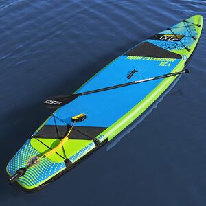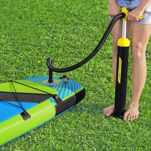 Надувной sup-борд с веслом SUP Aqua Excursion Tech Set - идеальный выбор для тех, кто любит активный водный отдых! Надежный упор для ног и страховочный трос обеспечивают безопасную прогулку по воде и создают комфорт во время гребли. Модель дополнена съемным плавником, который стабилизирует sup-доску во время движения, создавая устойчивость и способствуя развитию скорости. Материал надувной доски для sup-бординга сделан из прочного ПВХ, которому не страшны проколы и повреждения. Чтобы привести доску в рабочее состояние, ее достаточно надуть насосом, который есть в комплекте.