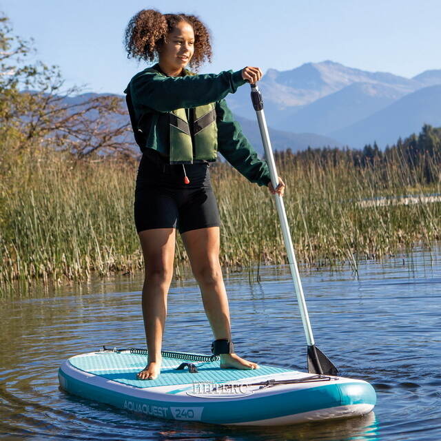 Надувной сап борд Aqua Quest станет идеальным решением как для начинающих, так и страстных любителей сап-серфинга. Благодаря прочным волокнам внутри доска sup board при заполнении воздухом поддерживает форму и необходимую для плавания жесткость. При всем этом, такая модель более удобная: надувная поверхность снижает утомляемость при длительных водных прогулках и риск ушиба при падении. Весло и антискользящая палуба повышают степень комфорта, делая водные прогулки по-настоящему увлекательными!