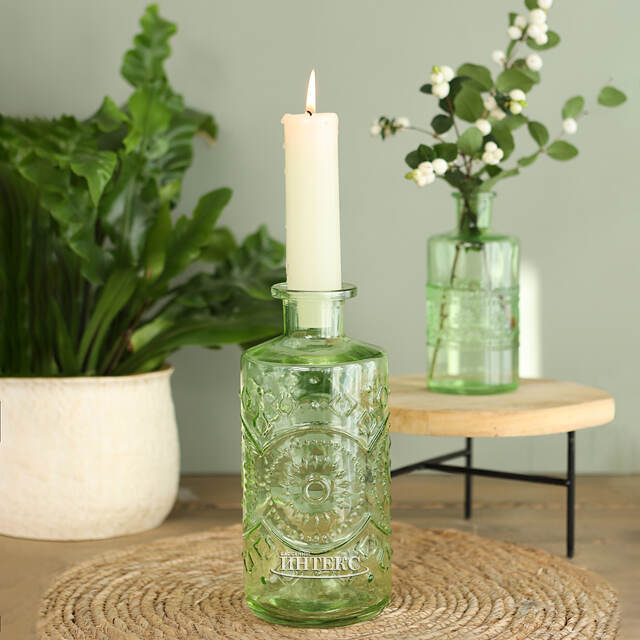 В преддверии весны так и хочется украшать дом, наполнять его стильным и атмосферным декором! Зеленая цветочная ваза, созданная голландскими кудесниками, станет отличным вариантом. Она впечатлит вас своим оригинальным дизайном и неповторимым узором на стеклянных гранях. В такой вазе-бутылке будет чудесно смотреться как небольшой букет цветов, так и изящная декоративная свеча.