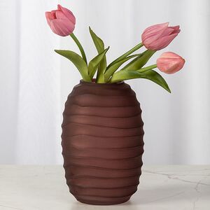 Оригинальный декор вазы для цветов Milaria превращает стекло в податливый шелк, что обвивает сосуд мягкими складками, грозя соскользнуть на пол, а притягательный оттенок верескового меда наводит на мысли о песчаных барханах, тонущих в жарких сумерках пустыни. Декоративная ваза обладает удивительным умением вдыхать в обстановку домашний уют и тягу к приключениям, простоту и роскошь, покой и вдохновение.