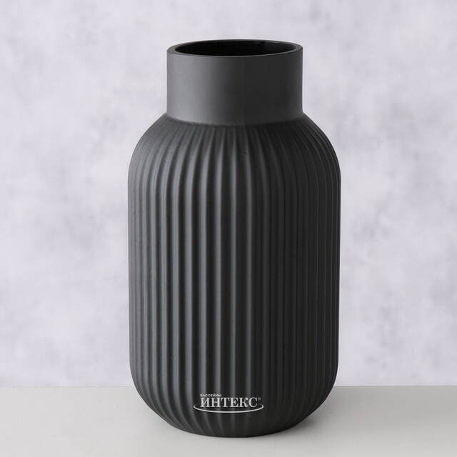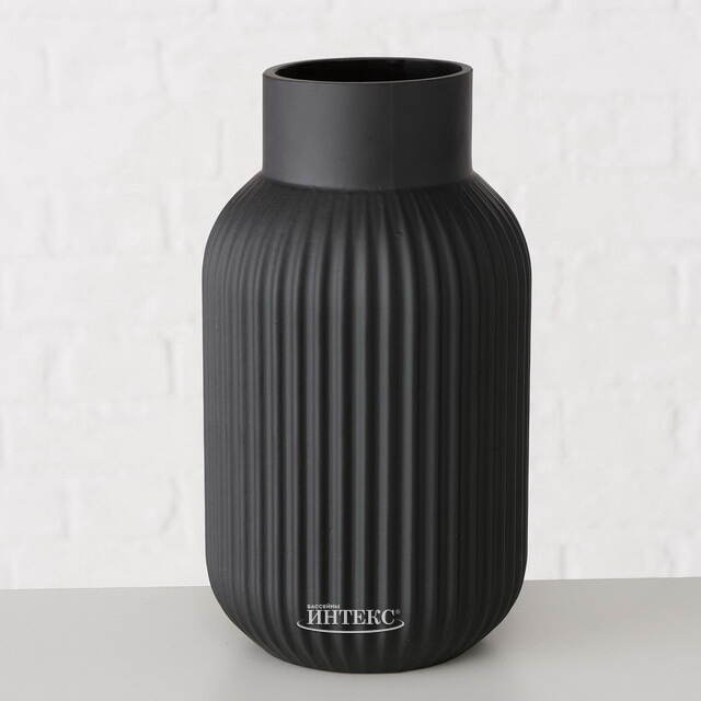 Стеклянная декоративная ваза Миранда - стильная находка для тех, кто не боится экспериментов! Элегантная форма с выразительными фактурными полосами облачена в магически-черный цвет, что моментально придает облику сосуда особую энергию силы. В интерьере в темных тонах эта ваза придаст глубины пространству, а в светлой обстановке создаст цепляющий внимание акцент. Подчеркивать дизайн интерьера, создавать настроение и волновать фантазию - с такими задачами этот аксессуар справится на 100%!