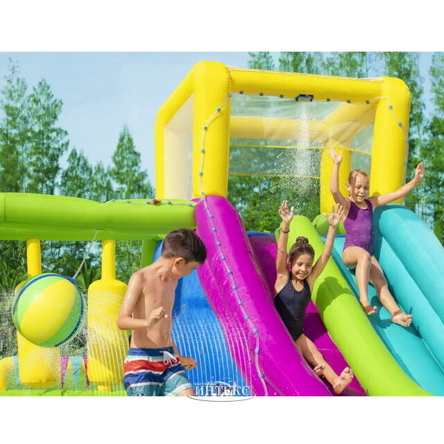 Надувной водный центр откроет новые горизонты развлечений для ваших малышей! Специальная полоса препятствий с мячом и подвесными "сталактитами" сделает их игры особенно веселыми и увлекательными. Двухместная горка удвоит удовольствие от съезжания вниз вместе со своими друзьями в бассейн, где можно наплескаться и нарезвиться вдоволь. Если вы давно хотели устроить вашим малышам домашнюю фотосессию, детский водный центр станет потрясающей площадкой для этого, подарив вам возможность запечатлеть радость и счастье на лицах воодушевленно резвящихся крошек.